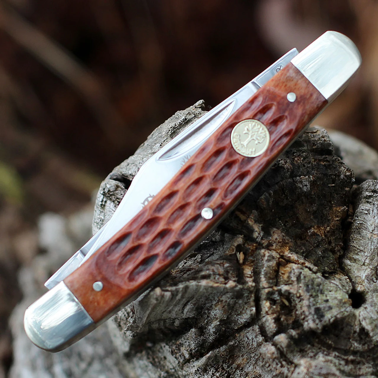 Boker Stockman with jigged brown bone handle.